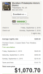 It’s always best to compare prices across several sites when booking a hotel. The property we ultimately decided on was the Wyndham Philadelphia-Historic District . Although the property was available to book on different sites, the total price for a premium room with two queens beds and free WiFi differed on the 3 sites I checked (Booking.com, Hotels.com, and Wyndham.com).