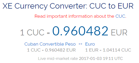 cuc-to-eur Posted by SurvivingOnAShoestring on January 3, 2017 Share this:Tweet Click to email a link to a friend (Opens in new window) Email Share on Tumblr Click to print (Opens in new window) Print More Click to share on WhatsApp (Opens in new window) WhatsApp Like Loading...